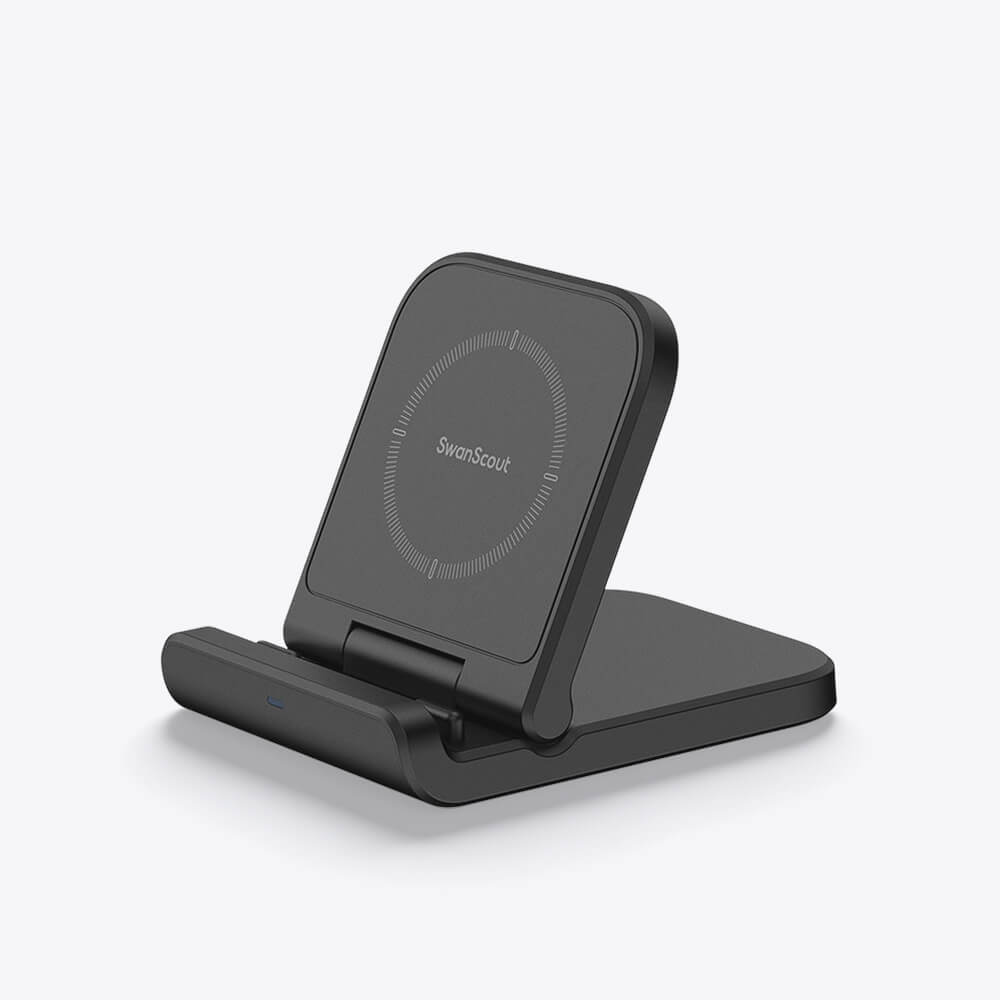 SwanScout 502S is a 2-in-1 Samsung wireless charger, featuring a foldable design for the watch, providing both convenience and functionality.
