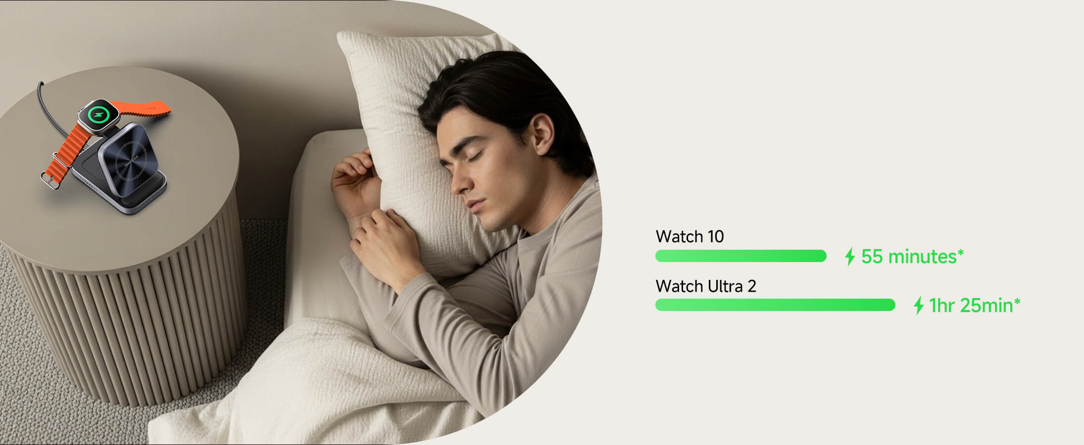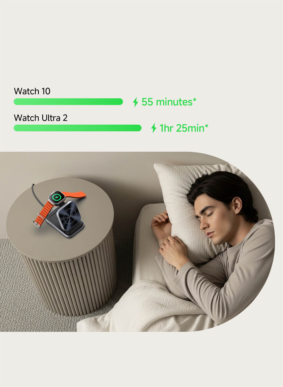 - Schnellladen für Apple Watch: Bietet 5W Schnellladen für Apple Watch Series 7 und neuer — laden Sie die Apple Watch Series 10 in nur 51 Minuten von 0 % auf 80 %.