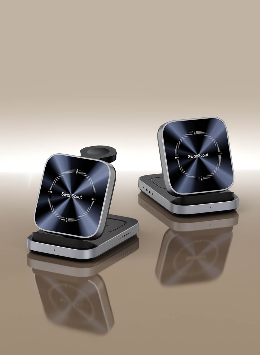 SwanScout 713A features a more compact design, making it easier to carry when traveling, but it only supports charging phones in a horizontal position. Both SwanScout 713A and SwanScout 708A provide efficient wireless charging for your Apple devices.