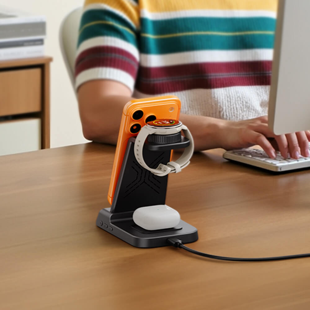 Ολοκληρωμένη λύση για φόρτιση τριών συσκευών, διατηρώντας τον χώρο εργασίας καθαρό και αποτελεσματικό