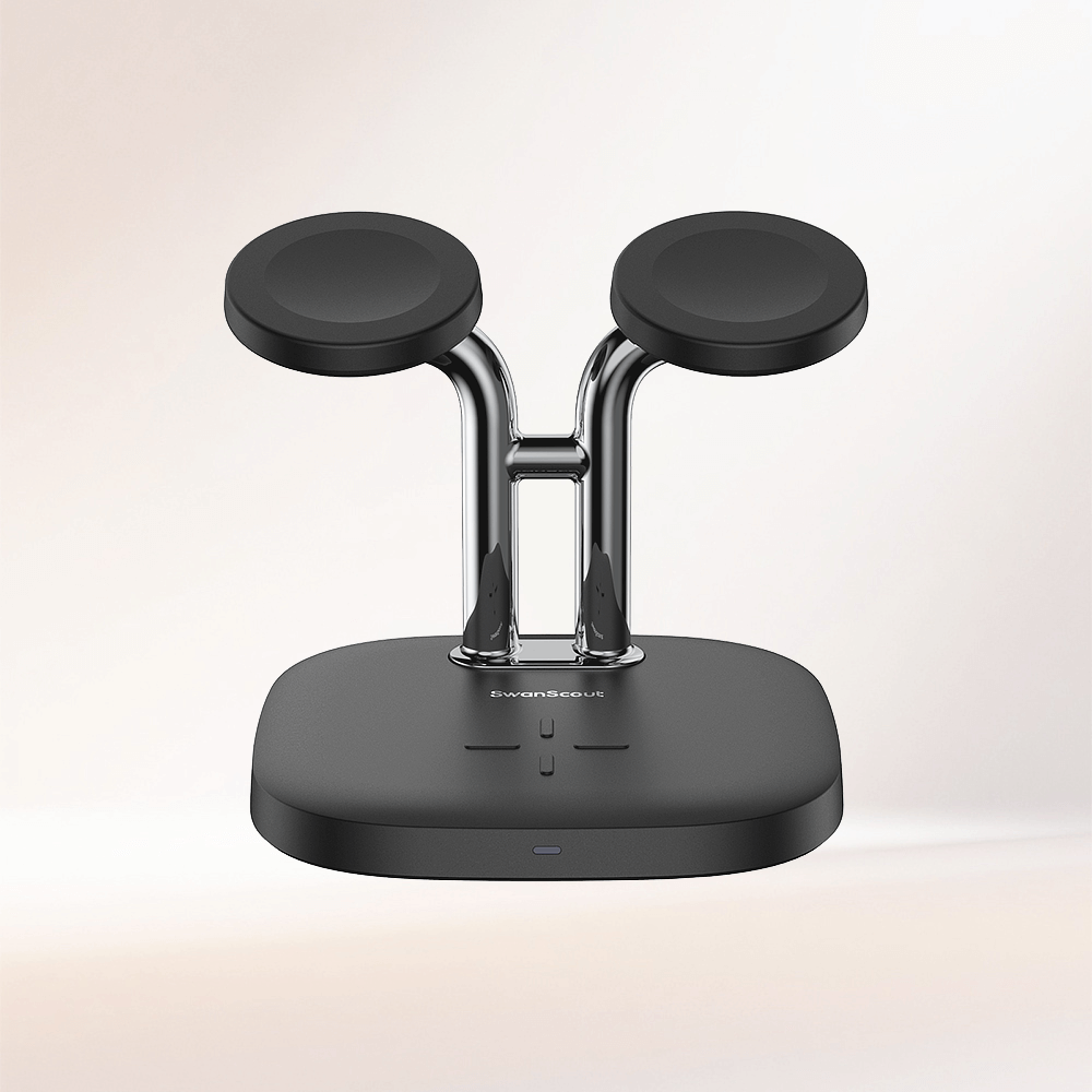 The swanscout 704S is a reliable Samsung dual watch wireless charger, perfect for users with multiple Galaxy watches.Built for versatility, the swanscout 704S functions as an efficient Samsung charger for daily charging needs.