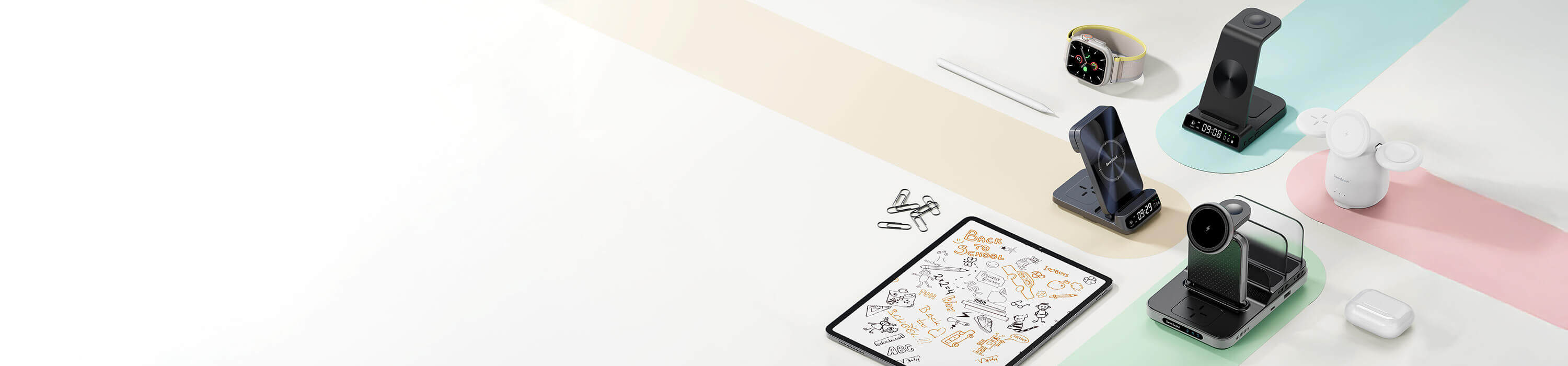 Les bureaux sont souvent exigus, et plusieurs chargeurs avec des câbles ne font qu’ajouter au désordre et au stress. Les chargeurs sans fil 3-en-1 et doubles de SwanScout rassemblent tous vos appareils dans une solution compacte et ordonnée, vous aidant à garder votre espace d’étude organisé, efficace et propice à la concentration.