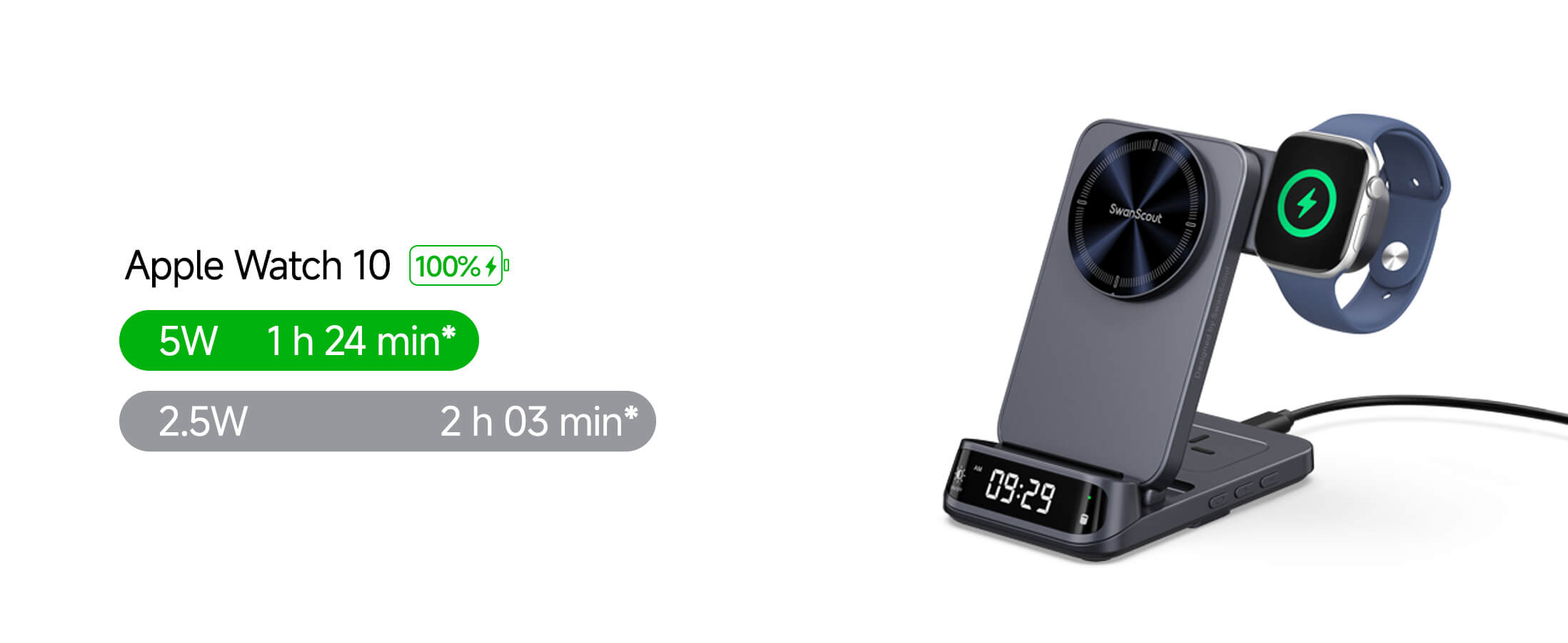 SwanScout 708M - Caricatore Wireless Magnetico 3 in 1 per Apple