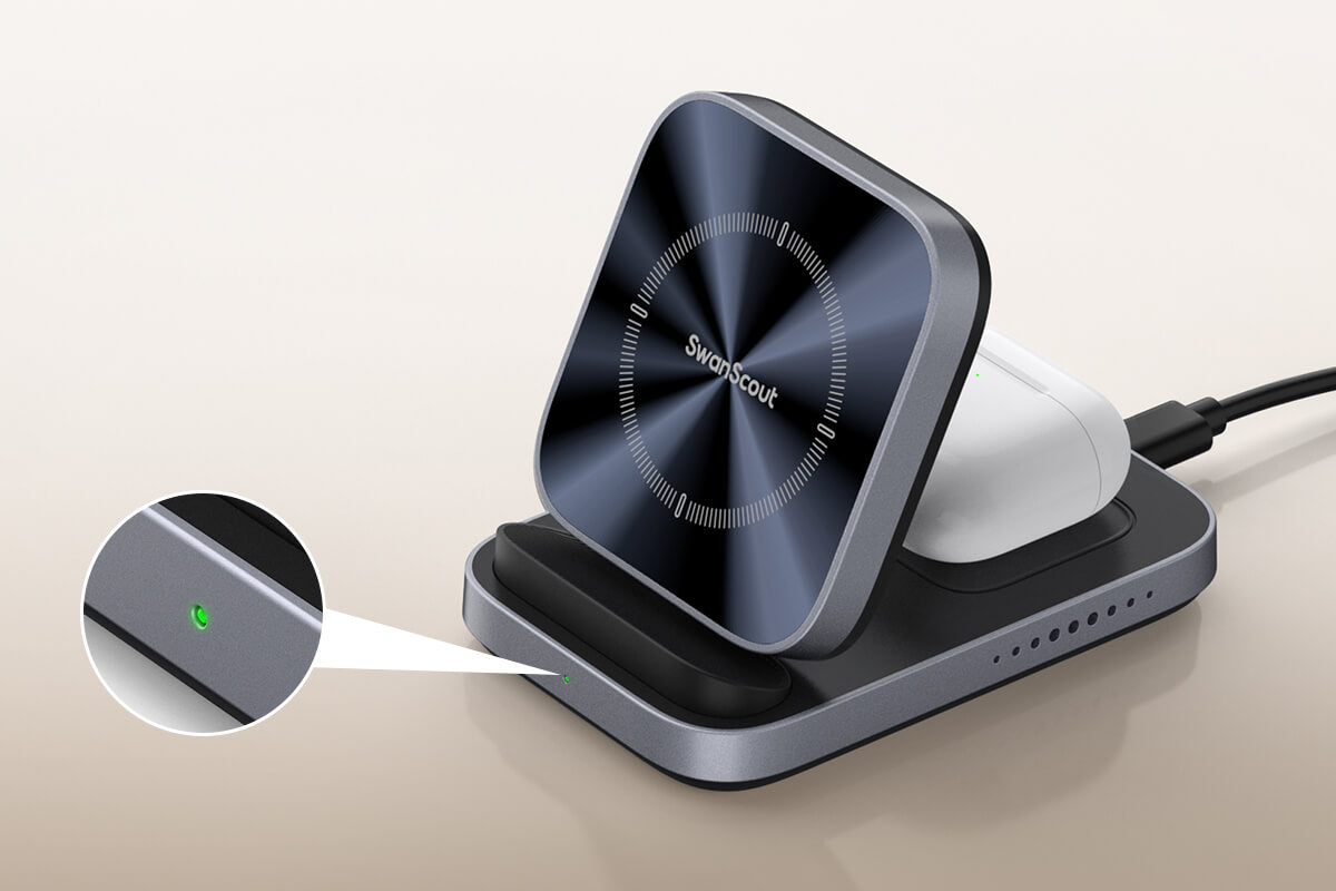 SwanScout 713A features a more compact design, making it easier to carry when traveling, but it only supports charging phones in a horizontal position. Both SwanScout 713A and SwanScout 708A provide efficient wireless charging for your Apple devices.