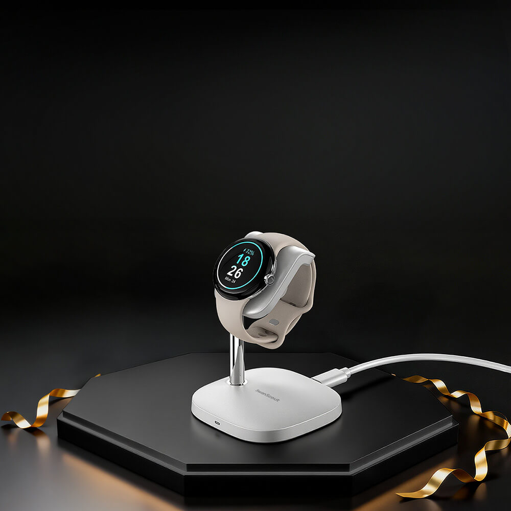 SwanScout 703G2 - 3 w 1 bezprzewodowa ładowarka do Pixel Watch 2/3 z zegarem