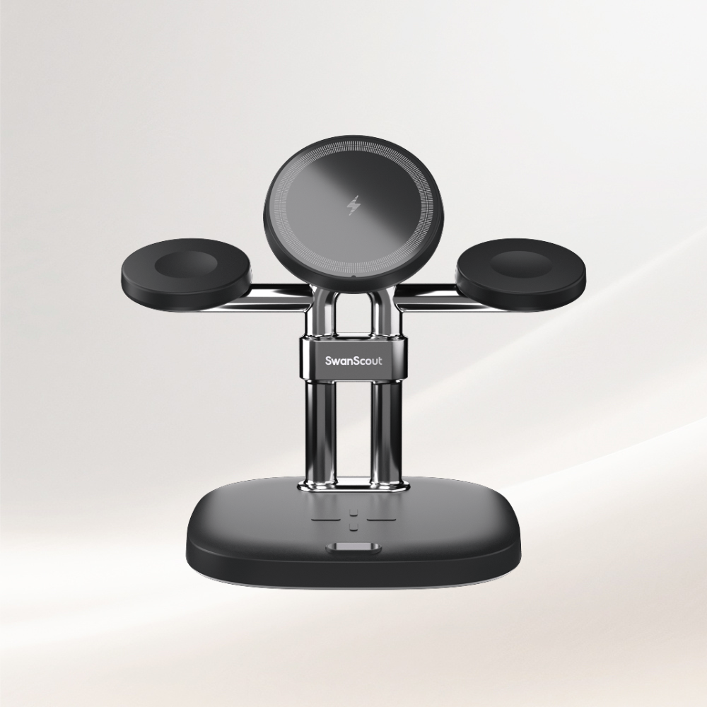 Utrustade med ett slitstarkt metallstativ håller SwanScout-laddare din klocka och andra enheter stadigt i både vertikalt och horisontellt läge, vilket säkerställer stabilitet utan att de glider. Det omsorgsfullt konstruerade stativet förbättrar användbarheten samtidigt som det effektivt förhindrar oavsiktliga fall och skador, vilket ger en bekymmersfri laddningsupplevelse.