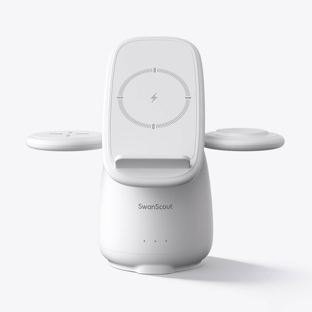 SwanScout 707S is a stable and elegant 3-in-1 wireless charger compatible with Samsung devices.The SwanScout 707S is a sleek Samsung wireless charging station built for daily efficiency and smart device organization.