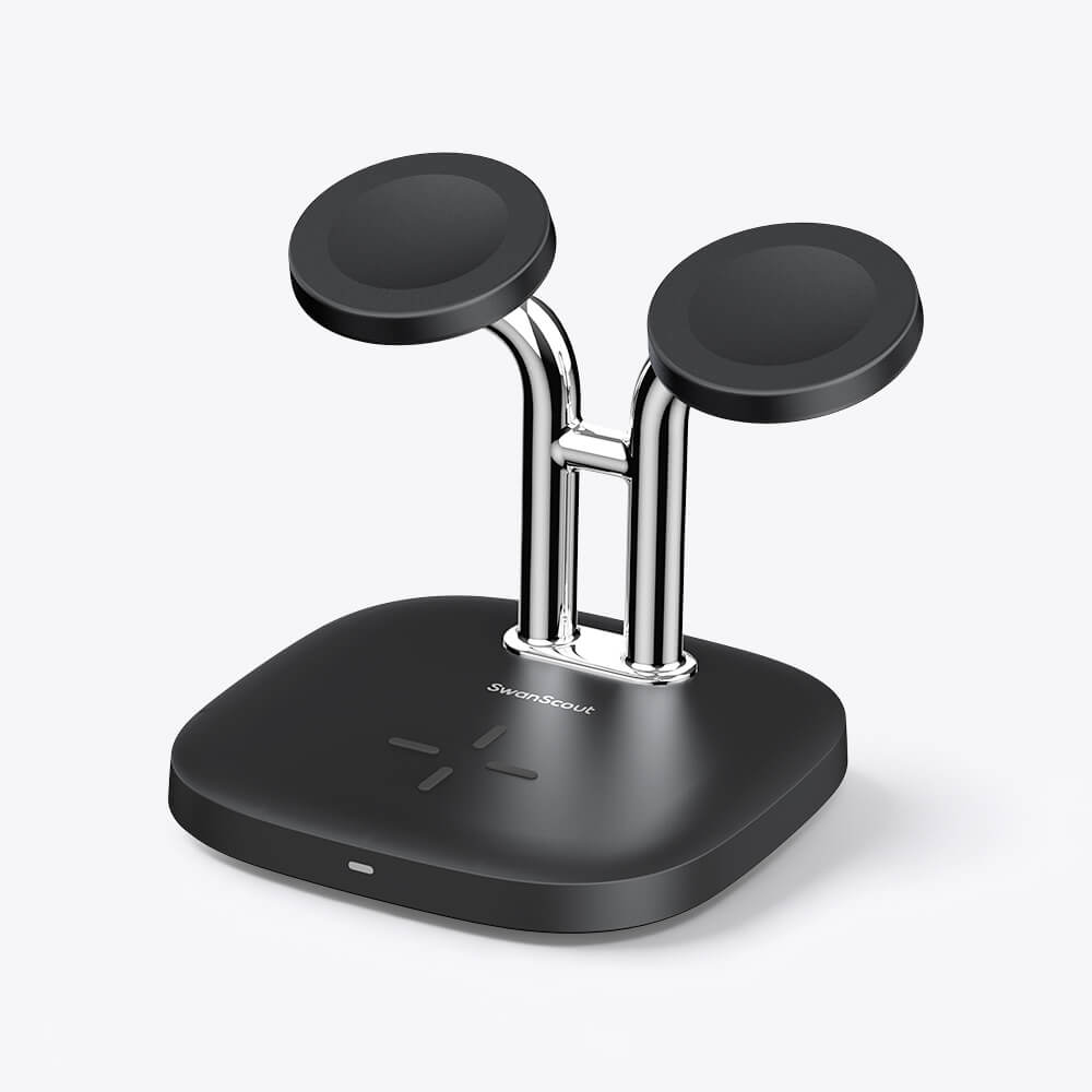The swanscout 704S is a reliable Samsung dual watch wireless charger, perfect for users with multiple Galaxy watches.Built for versatility, the swanscout 704S functions as an efficient Samsung charger for daily charging needs.