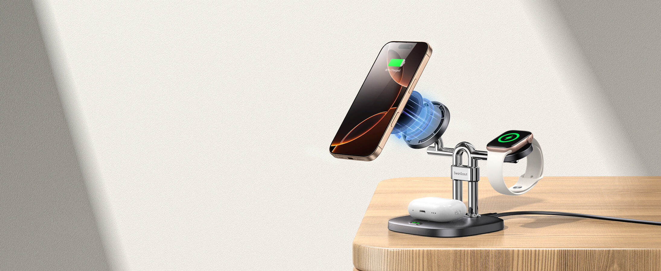 SwanScout 712M - 3-i-1 Magnetisk Trådlös Laddstation för Apple