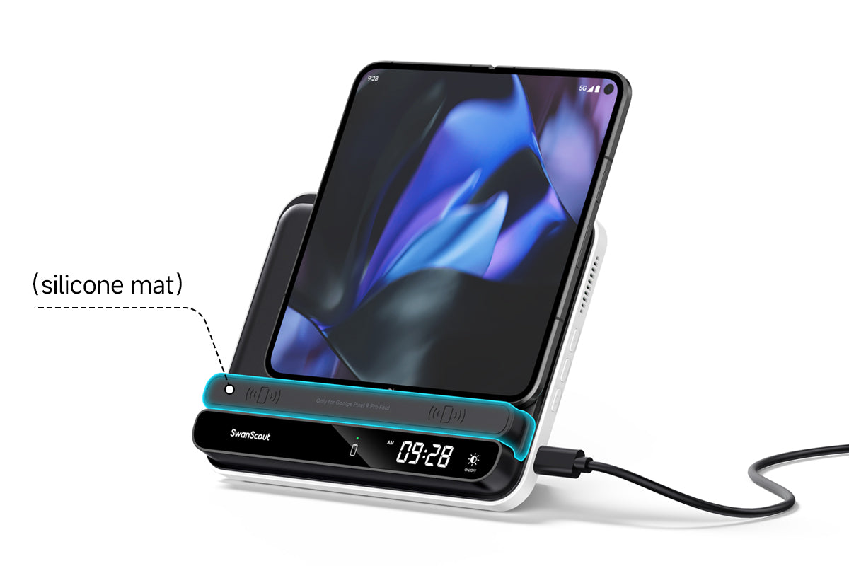 The SwanScout 504F also serves as a Pixel Fold wireless charger, ensuring stable power delivery without overheating.