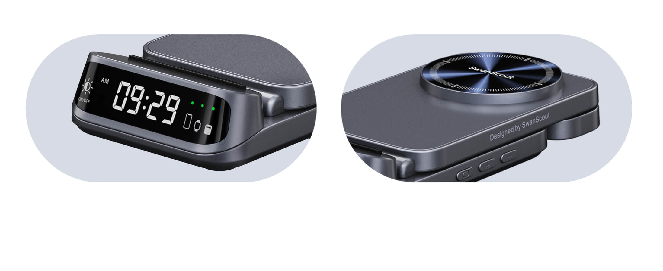 The swanscout 708M combines elegance and speed with fast wireless charging for iPhone and Apple Watch.
