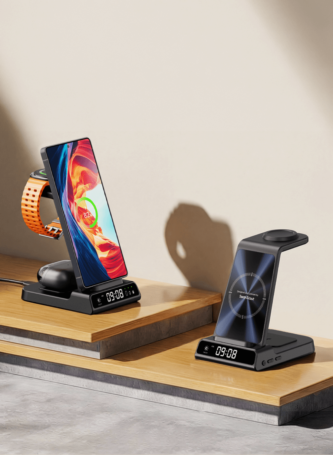 The SwanScout C01 serves as a fast and elegant wireless phone charger for modern lifestyles.